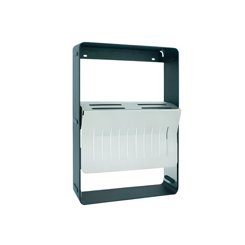 Linero Columns, uma estrutura multiuso fabricada em aço com acabamentos em cinza escuro (RAL7021). O resto das peças são fabricadas em acabamento em aço escovado.