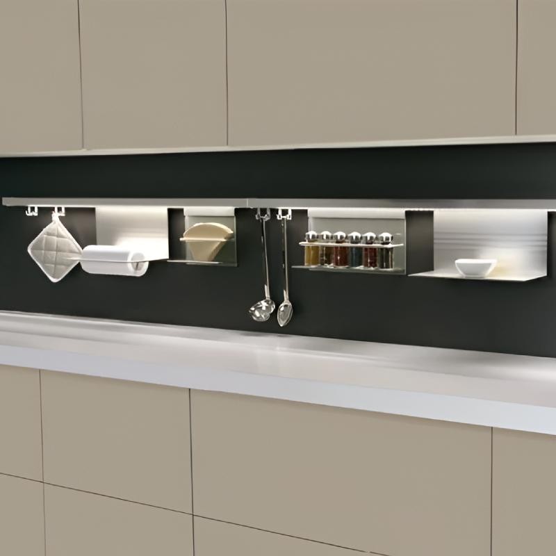 O porta-especiarias é um acessório funcional e decorativo projetado para integrar-se ao sistema Linero Modern. Este suporte permite manter as especiarias organizadas e acessíveis, otimizando o espaço sobre a bancada e acrescentando um toque de sofisticação ao ambiente da cozinha.