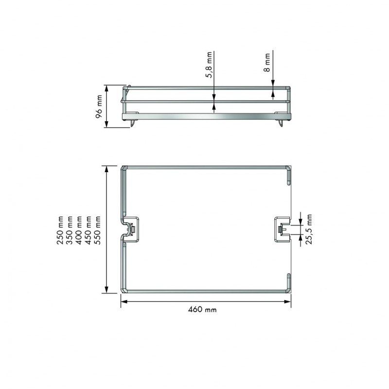 De acordo com a largura do móvel onde os cestos com o seu quadro extraível correspondente serão instalados, terão as seguintes dimensões (largura x altura x profundidade):