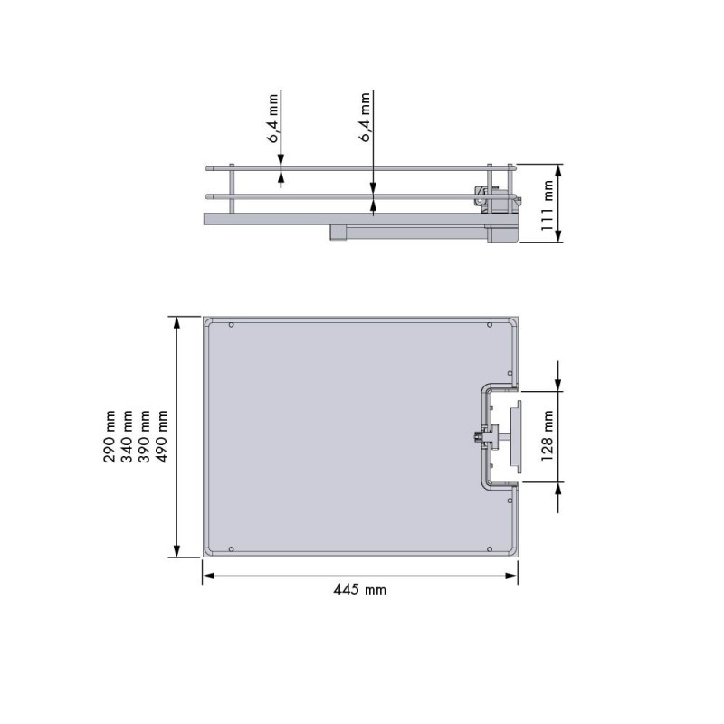 De acordo com a largura do móvel onde serão instaladas as cestas com seu respectivo bastidor extraível, terão as seguintes dimensões (largura x altura x profundidade):
