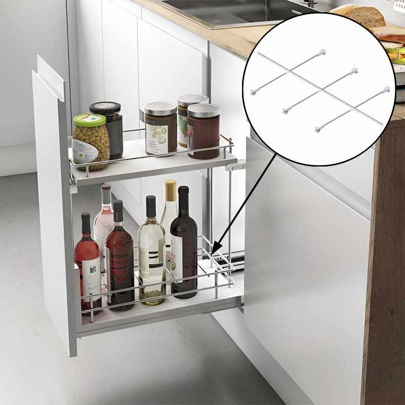O separador de garrafas é um acessório projetado para organizar garrafas em módulos extraíveis da linha Compact. Fabricado em aço cromado, oferece uma solução resistente e estética para manter as garrafas na posição, evitando movimentos durante a abertura ou fechamento do módulo.