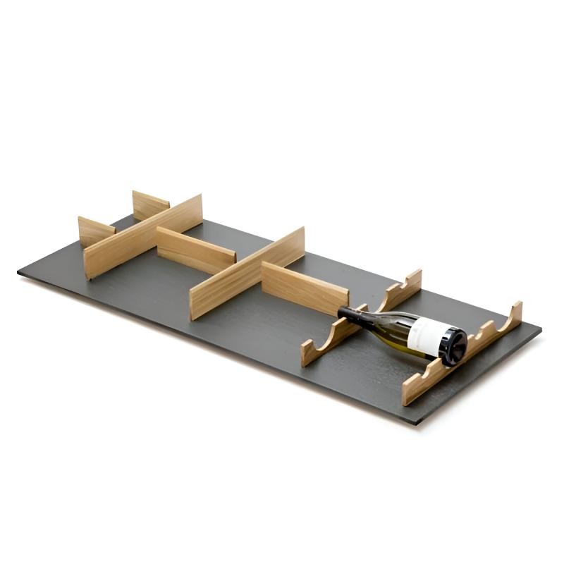 Mix Set 7 da Cucine Oggi, conjunto para organizar gaveteiros de 1200 mm, com componentes em carvalho, inclui fundo perfurado em antracite, divisores e garrafeiro.