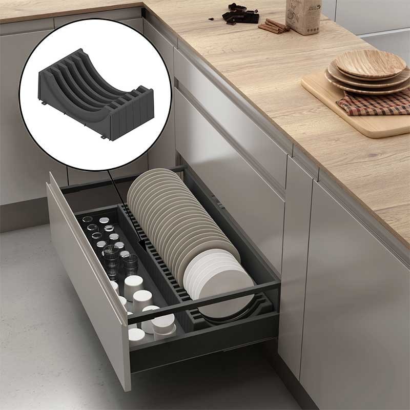 Kit para o encerramento das extremidades do acessório Suporte para Pratos. Aumenta a capacidade em 2 pratos, além de melhorar a estética final do conjunto.