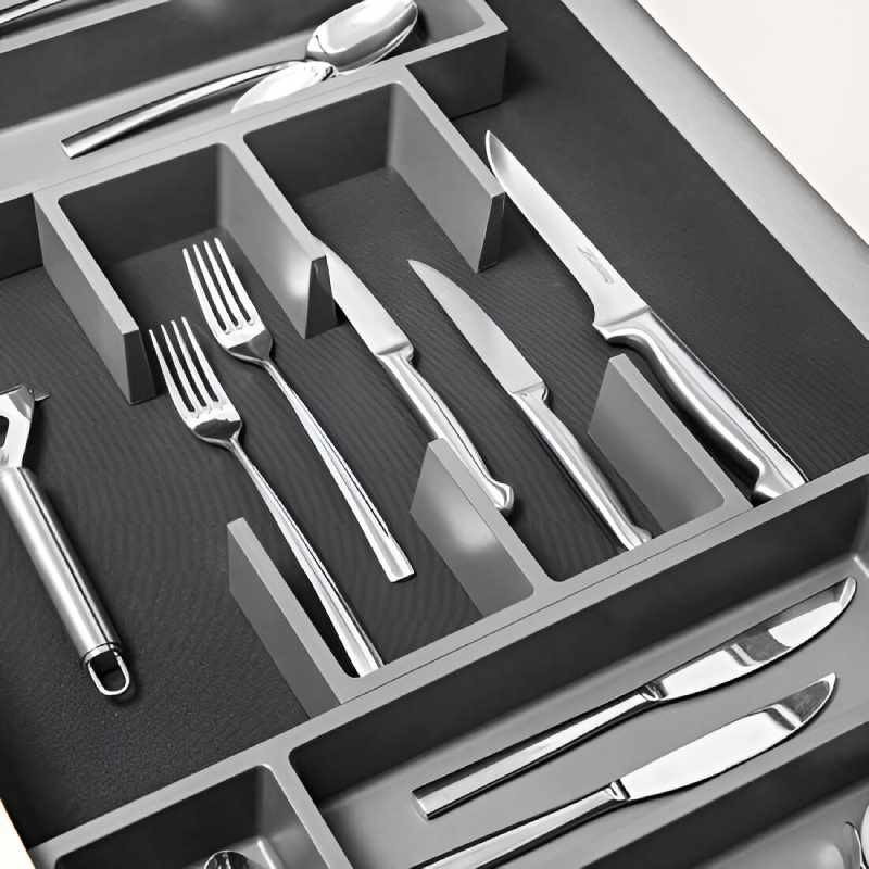 Set Connect 2 para gavetas de 450–600 mm, cubertero modular em antracite com tapete antiderrapante, ideal para organizar as tuas gavetas de cozinha.