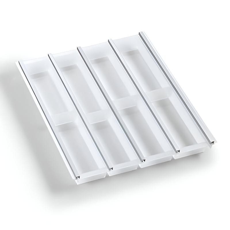 Organizador de Talheres Fusion System Set 4 para gavetas de 500 mm, com cubetas modulares, varilhas e terminais que oferecem uma organização moderna.