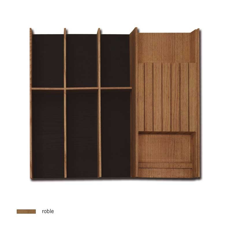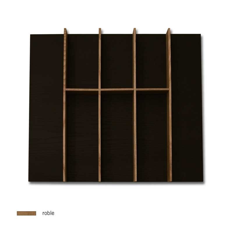 Porta talheres em madeira de 600 mm modelo Rima com fundo em carvalho envernizado preto de 5 mm e divisórias em carvalho natural. Vários modelos com diferentes acessórios.