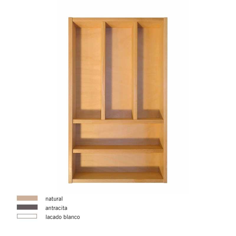 Porta talheres de madeira modelo Cube para gavetas de cozinha. Disponível em 3 cores para escolher, e para diferentes medidas de móveis.