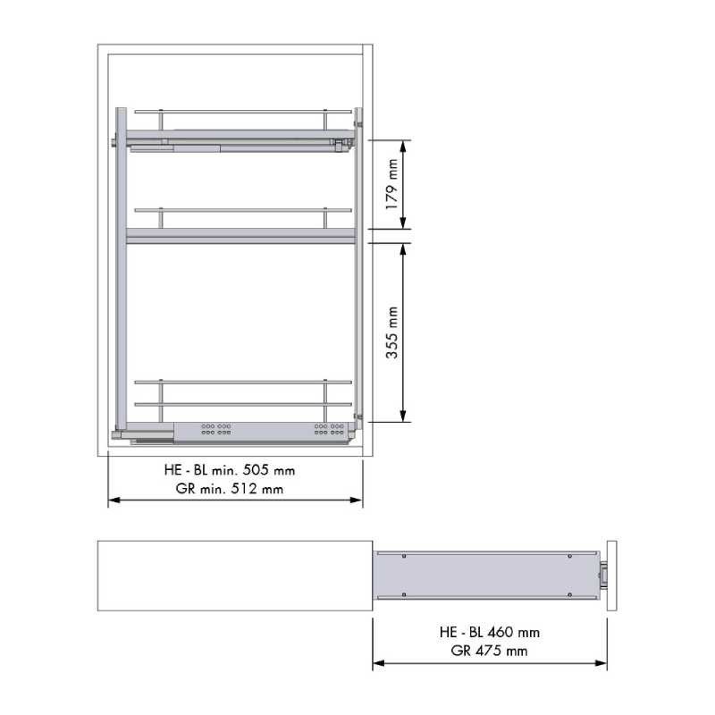 | 200 | Blum (Bl) | 162-168D x 677H x 493L |