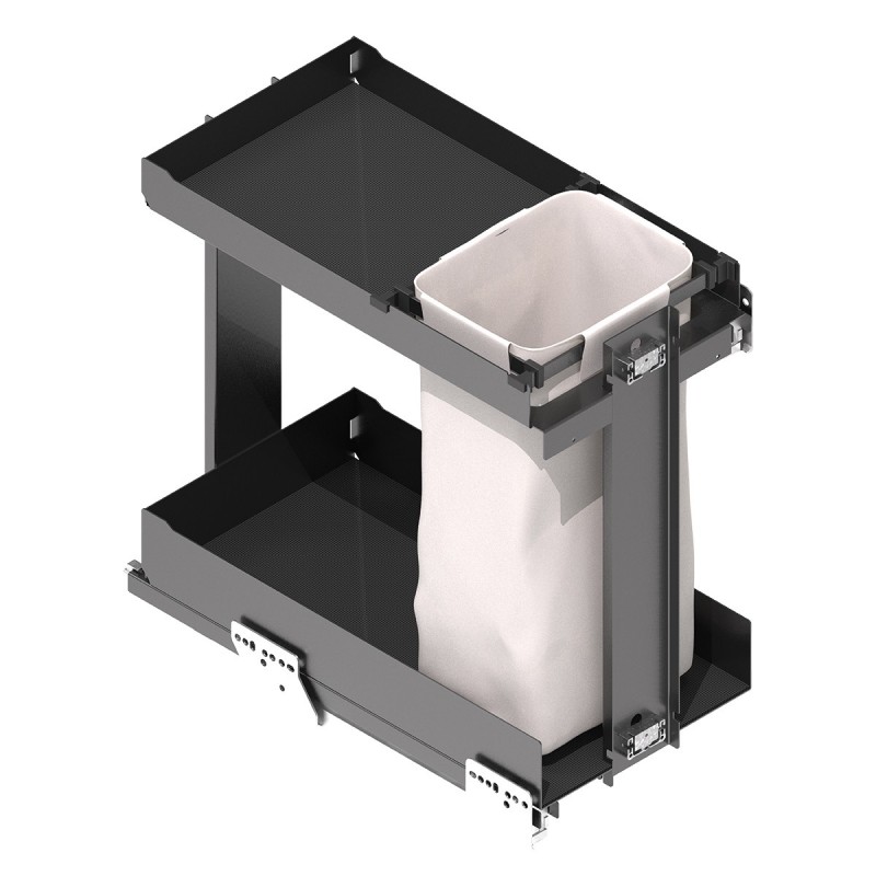 Porta-garrafas extraível Nova Flat de aço acabamento antracite com bases antiderrapantes, guias basais ocultas, extração total e fechamento amortecido.