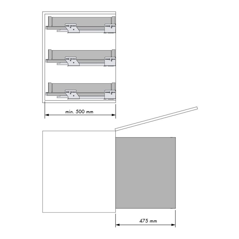 Cesto multiuso extraível para armazenamento em móveis de cozinha.