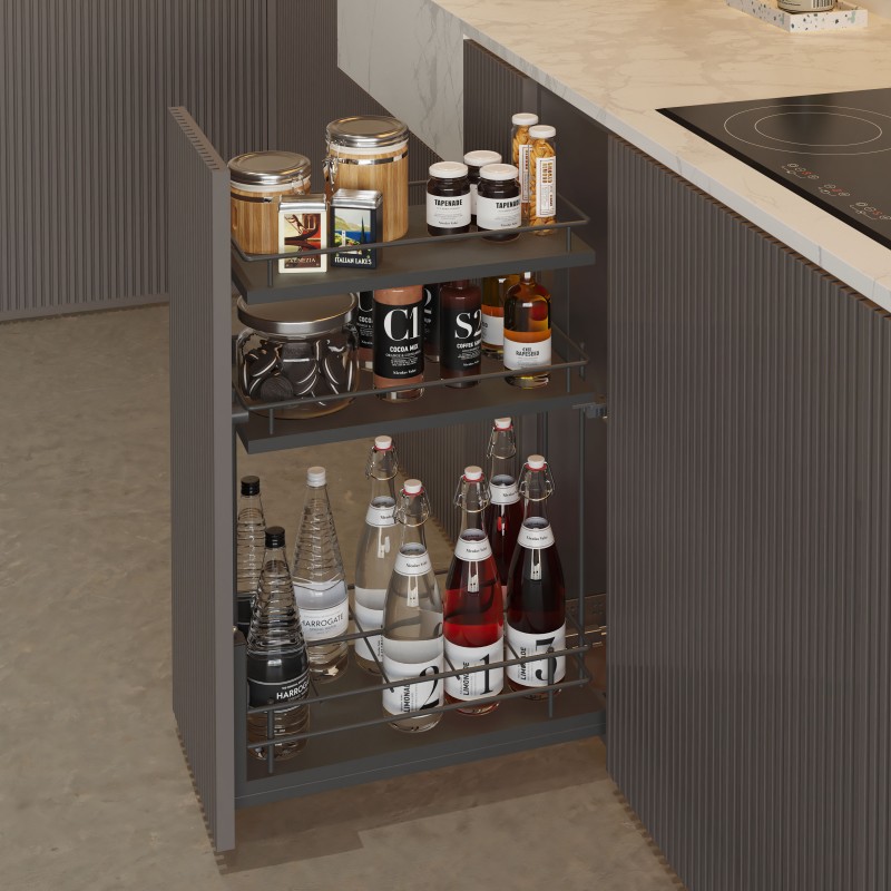 Módulo extraível garrafeira linha Compact antracite para móvel de cozinha para armazenamento de garrafas, frascos, especiarias e pequenos recipientes.