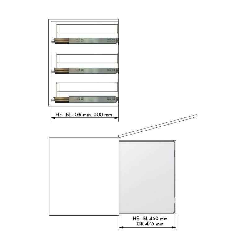 | 500 | Blum (Bl) | 462-468L x 157A x 490P |