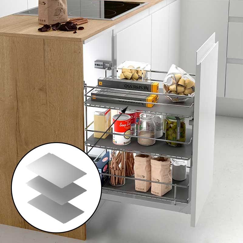 Suporte p / módulo extraível verdulero de 3 andares. Acabamento em aço cromado. Guias de extensão total com freio. Várias medidas disponíveis.