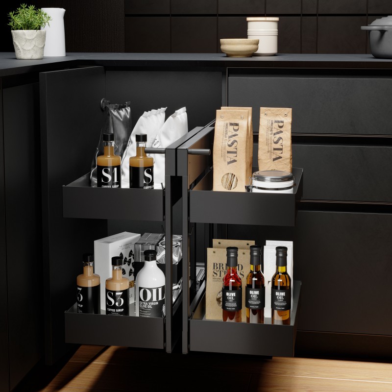Módulo kit bastidor removível para móvel de canto de cozinha. Duplo corpo e dupla altura de bandejas para uma maior capacidade e aproveitamento do espaço.