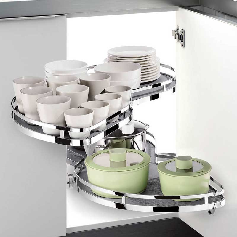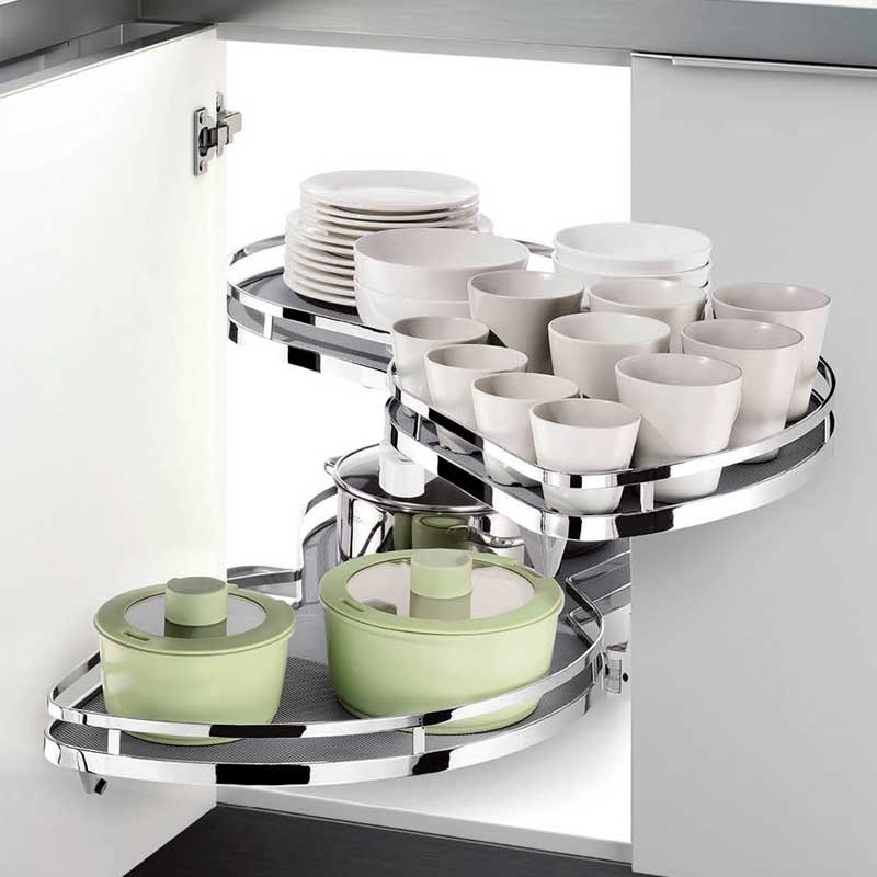 Flytray modelo oscilante removível dupla bandeja Módulo para armário de Canto da cozinha. Hastes perimetrais planas. Disponível em 2 medidas, 2 acabamentos e abertura porta a escolher.