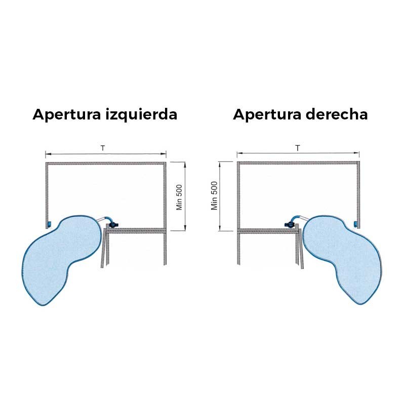Este extraível não é reversível e tem uma posição de instalação determinada, ou seja, dependendo de para onde abre a porta do móvel onde será instalado, será necessário selecionar a "abertura ou extração" por onde sai o extraível. Detalhamos abaixo as 2 opções: