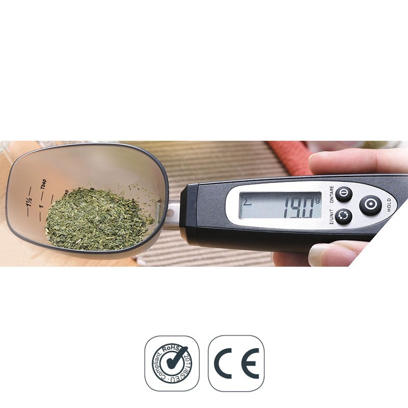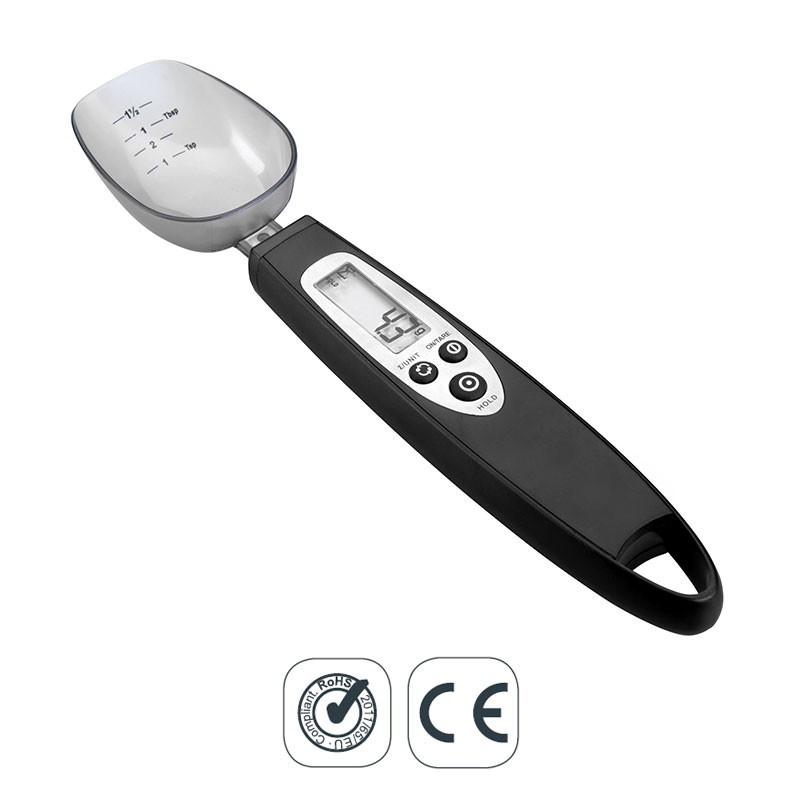 Colher digital de medida até 300 gramas, com escala de precisão de 0,1 gramas. Medida: 28 cm de comprimento.