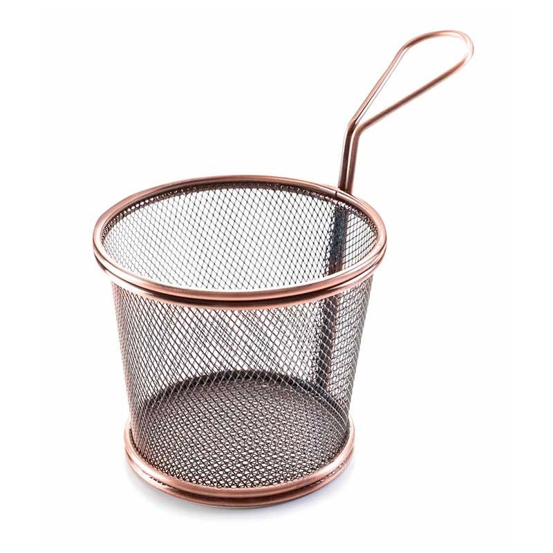 Cesta redonda feita de aço de alta qualidade cor aço ou bronze para escolher. Ideal para servir aperitivos ou tapas de forma diferente e original.