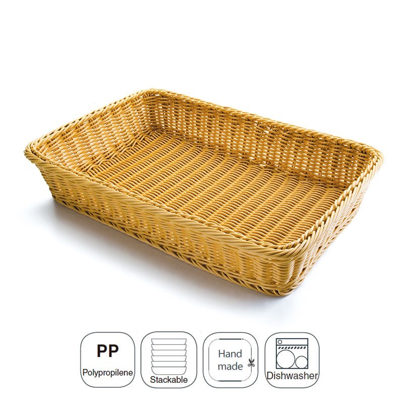 Cesta de pão quadrada e empilhável fabricada à mão em polipropileno de alta resistência máquina de lavar louça. Ideal para hotelaria e restauração. Medidas: 53X33,5X9 cm