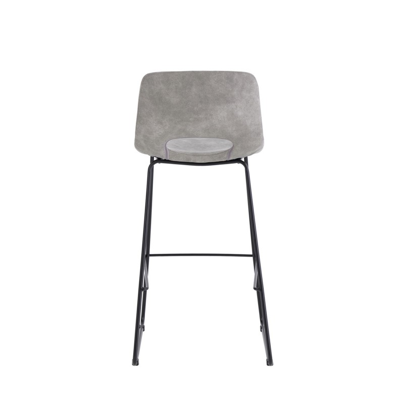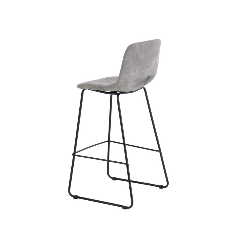 Banco alto ROWAN cinza claro, ideal para espaços contemporâneos. Assento estofado em couro sintético cinza, encosto ergonômico e pernas de metal modernas.