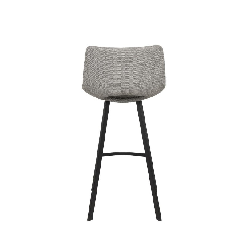 Taburete alto ASTON cinza claro, ideal para interiores contemporâneos. Estrutura de metal, estofado em tecido cinza claro e apoio para os pés integrado.