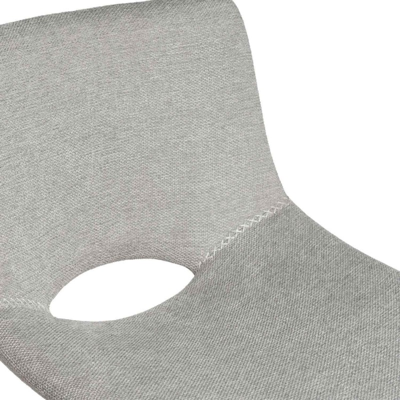 Sua estrutura é composta por pernas de metal e um estofado de tecido na cor cinza claro (100% poliéster), com uma leve curvatura no encosto que proporciona maior conforto.