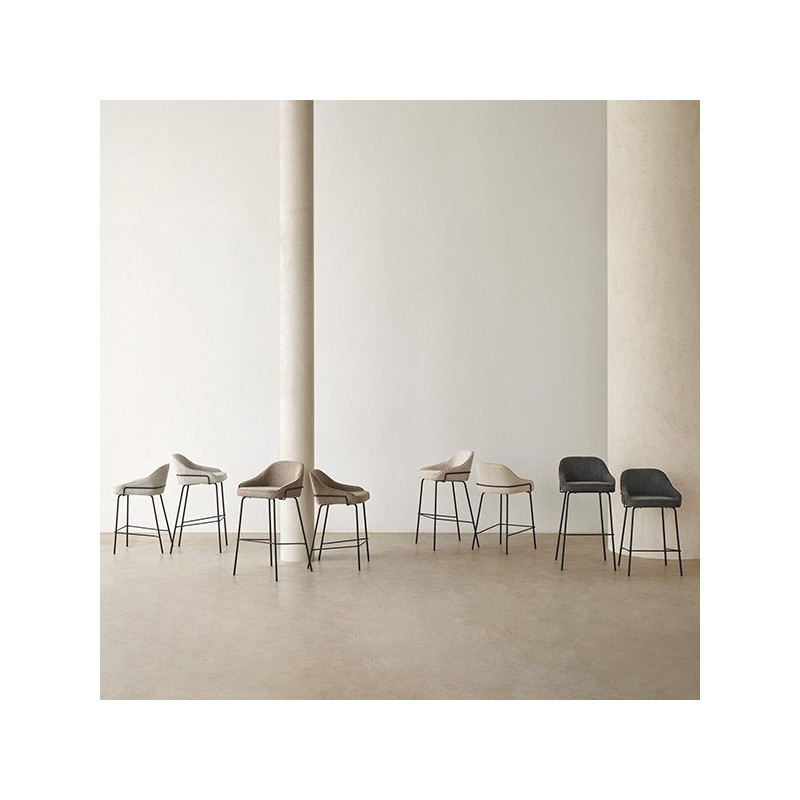 A banqueta alta LOUIS se distingue pela integração do seu encosto com os apoios de braço, oferecendo um conforto e suporte adicionais que a tornam perfeita para longas sessões de uso.