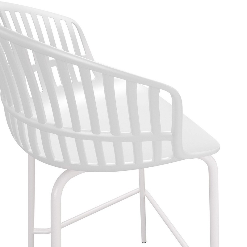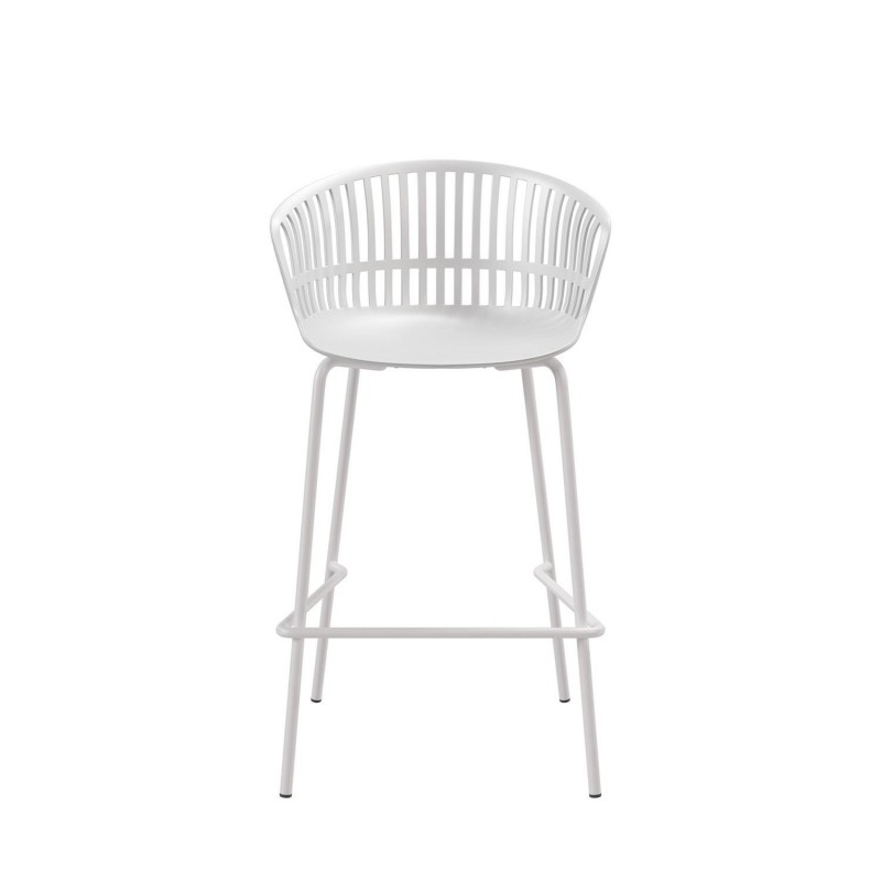 Os pés de metal robustos deste banco incluem um apoio para os pés estrategicamente posicionado, proporcionando suporte adicional e um nível extra de conforto para que você possa desfrutar ao máximo dos seus momentos de descanso ou trabalho.