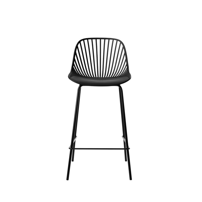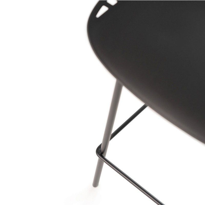 O banco baixo PEYTON destaca-se pelo seu design original, com um encosto aberto composto por pequenas barras verticais e um assento de polipropileno na cor preta, tudo em uma única peça.As suas pernas, de metal lacado em mate, incluem um apoio para os pés que proporciona maior estabilidade e conforto.Este banco é perfeito para qualquer ambiente, graças ao seu estilo moderno e versátil.