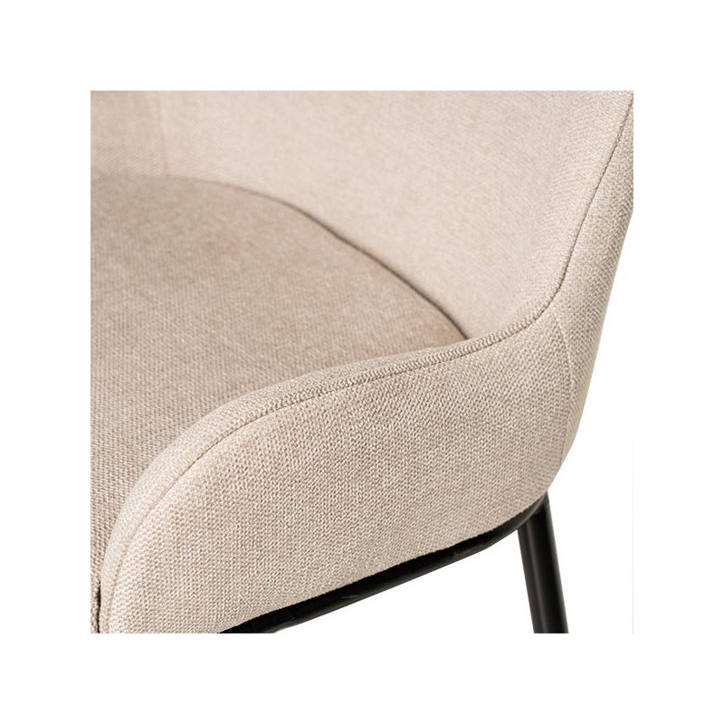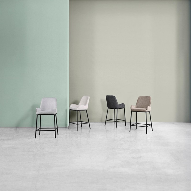 A banqueta baixa MILTON é uma opção elegante e sofisticada, ideal para cozinhas e salas de jantar. Seu estofado em tecido bege oferece um toque de suavidade e conforto que convida a sentar. As pernas de metal preto não só proporcionam um contraste visual atraente, mas também garantem durabilidade e estabilidade.