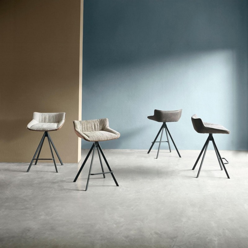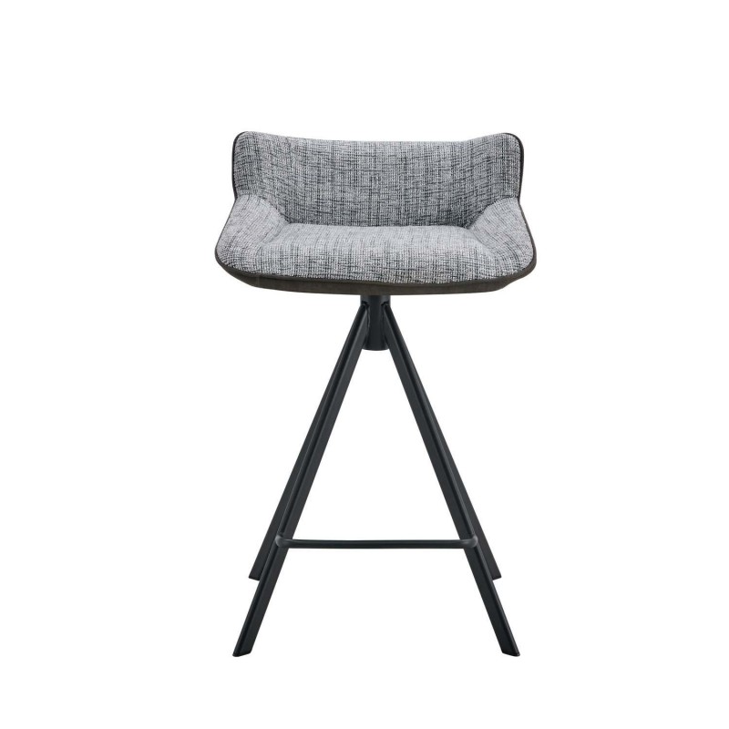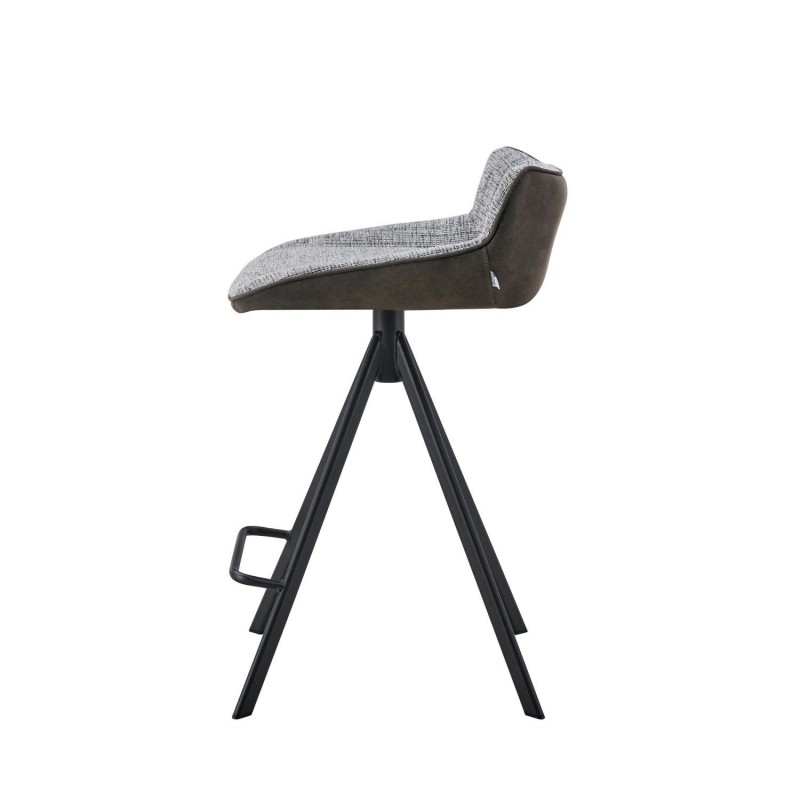 A base desta banqueta é formada por pernas de metal preto ligeiramente inclinadas para fora, o que proporciona uma base sólida e estável. Além disso, o apoio para os pés não só acrescenta um toque estético, mas também reforça a estrutura da banqueta, garantindo sua durabilidade para um uso diário prolongado.