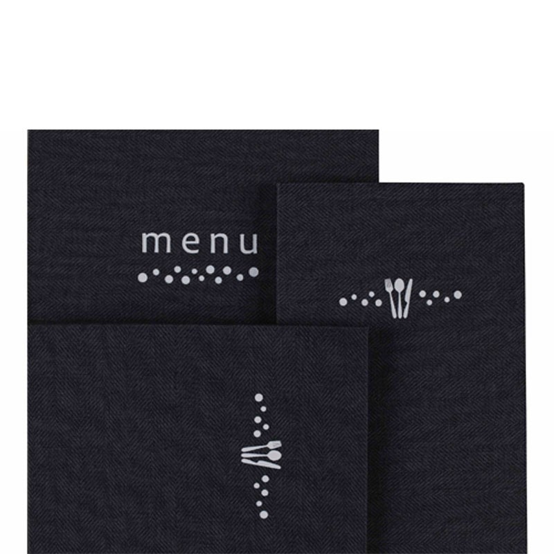 Portamenús coleção Paulo é fabricado em imitação de pele com termosellado na cor branca e luvas de PVC com rosca interior. Ideal para hotelaria e restauração. Tamanho a escolher.