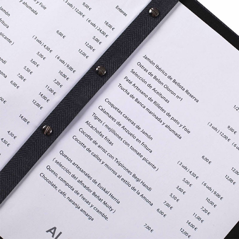Colocamos à disposição do cliente a opção de personalizar o carimbo do portamenú com seu próprio nome ou logótipo. Para isso, entre em contato conosco para que lhe possamos dizer os passos a seguir e o seu preço final do produto.