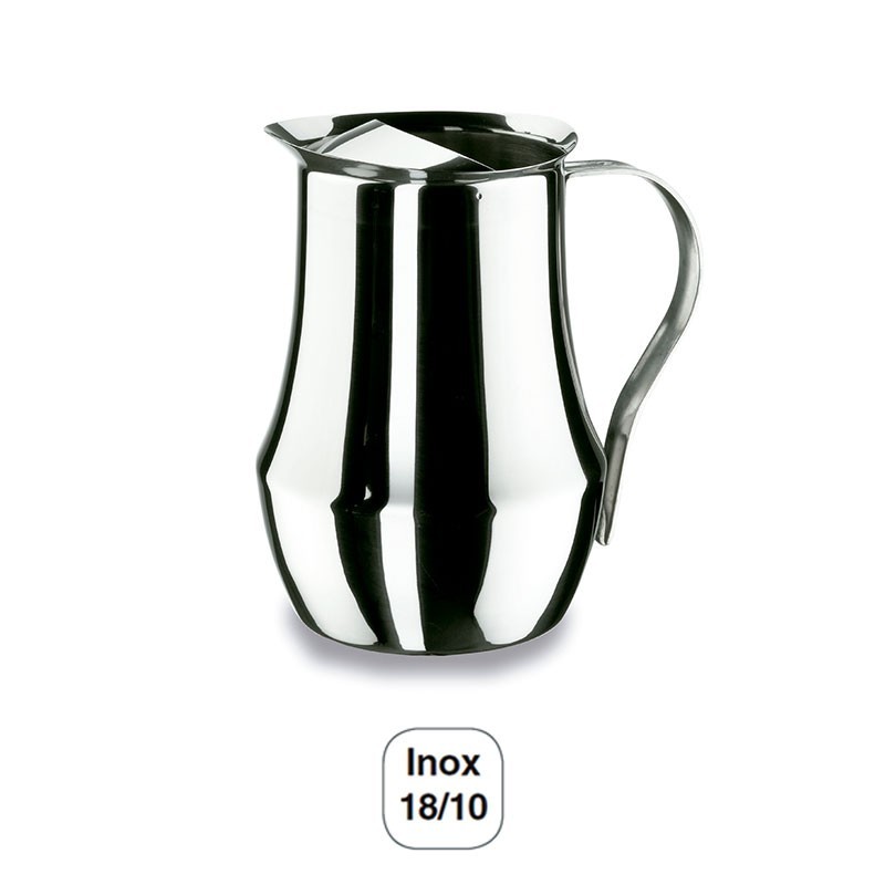 Frasco de 2 l de capacidade, com um corpo bombado e retentor na borda fabricada em aço inoxidável 18/10 de alta qualidade e excelente resistência à corrosão.