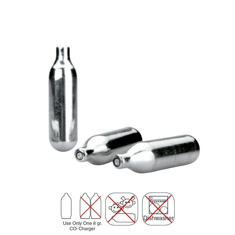 Pack de 10 cargas de CO2 de 8 gramas cada uma para garrafas de alumínio sifão de Lacor.