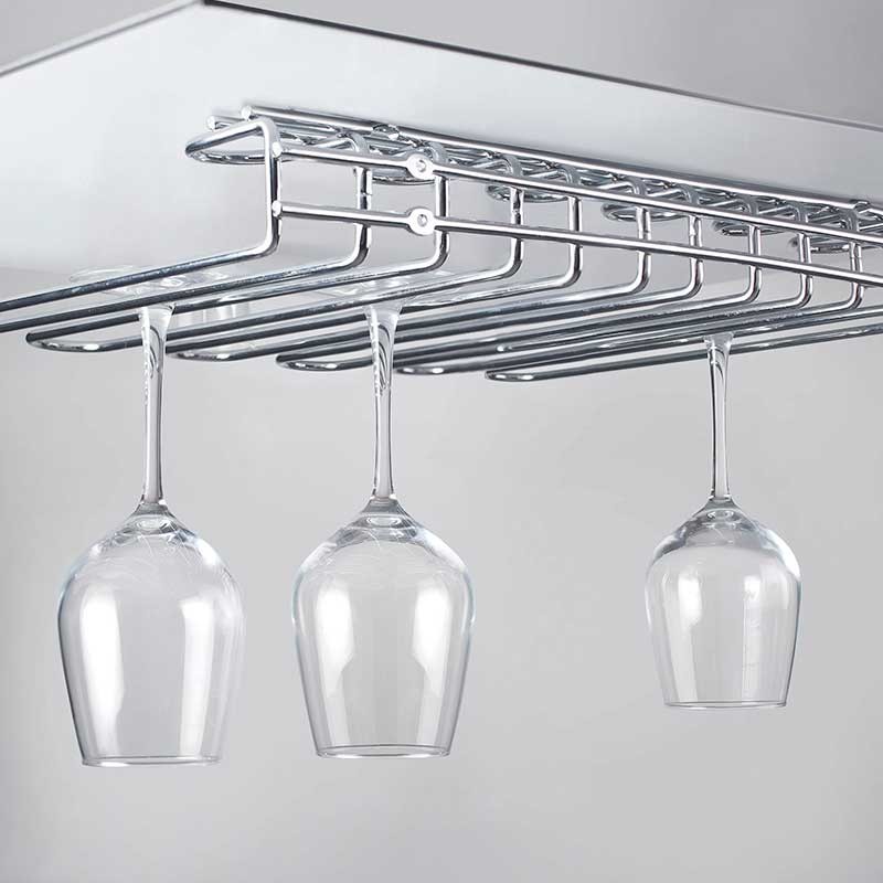 Suporte de tapas de aço cromado que permite economizar espaço e armazenar os cálices de maneira ordenada.