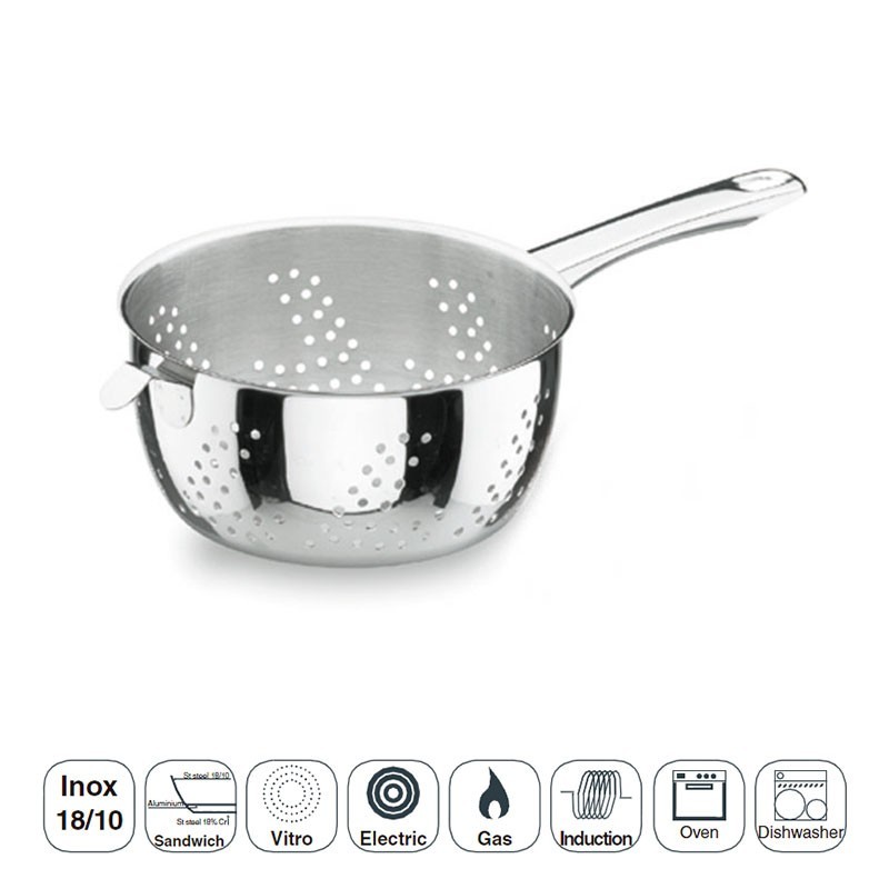 Peneira esférico modelo Vitrocor fabricado em aço inoxidável 18/10 de alta qualidade que oferece excelente resistência à corrosão e aos ácidos alimentares e sais.