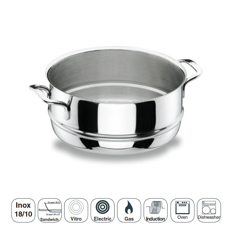 Bandeja para cozinhado a vapor modelo Gourmet fabricada em aço inoxidável 18/10 com fundo termodifusor sanduíche adequado para placas de indução, elétricos, placas e fogões a gás.