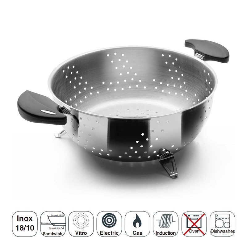 Escurridera fabricada em aço inoxidável 18/10 de alta qualidade que oferece excelente resistência à corrosão e aos ácidos alimentares e sais.