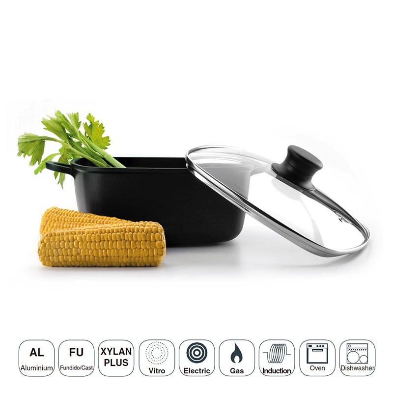 Totalmente compatível com todo o tipo de cozinhas como a indução, placas, elétricas e de gás. Além disso, é adequada para o forno e para sua limpeza na máquina de lavar louça.