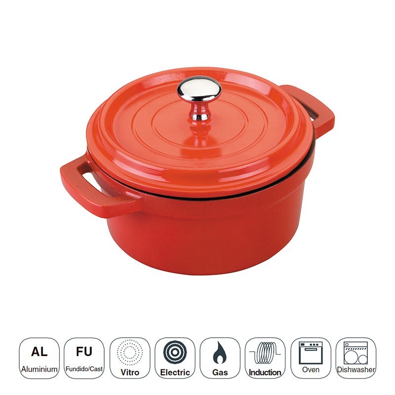 Bandeja mini com tampa fabricado em alumínio fundido antiaderente com acabamento externo vermelho, válida para placas de indução, elétricas, vitros e fogões a gás.