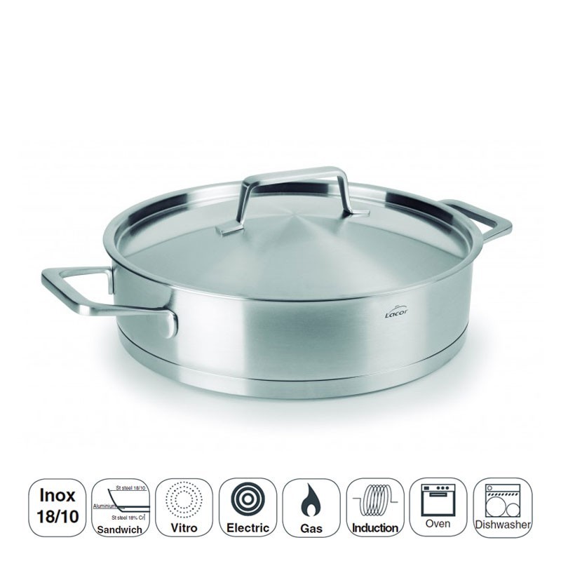 Panela com tampa fabricado em aço inoxidável 18/10 de alta qualidade que oferece excelente resistência à corrosão e aos ácidos alimentares e sais.