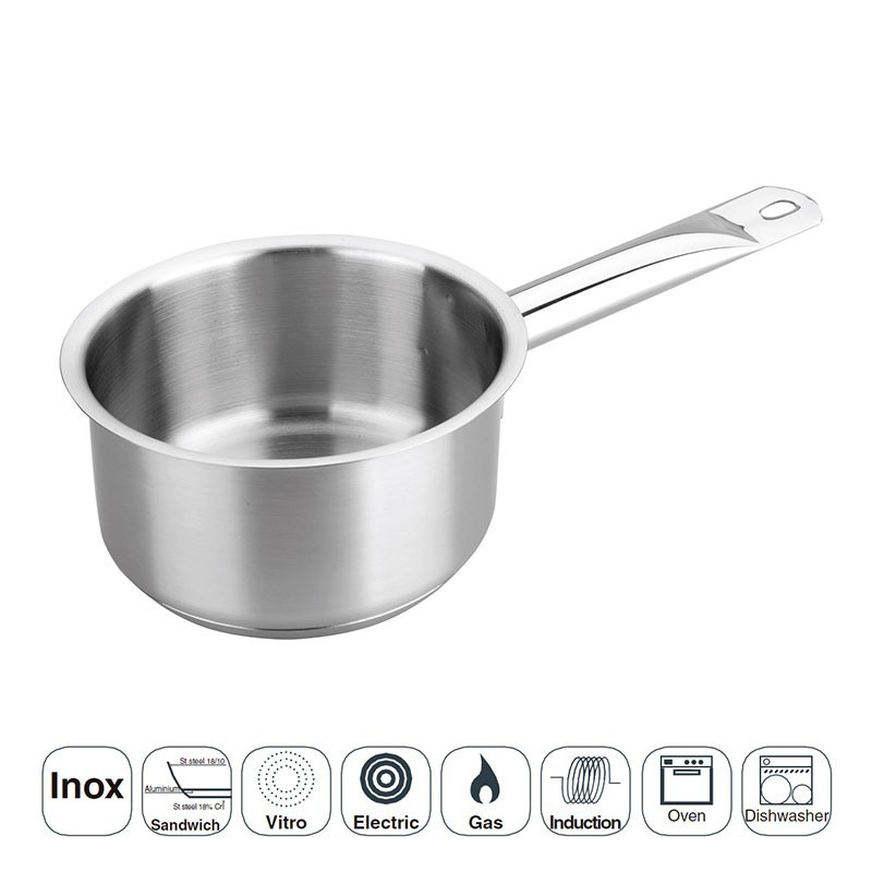 Colher reto profissional modelo Eco Chef fabricado em aço inoxidável com fundo termodifusor sanduíche adequado para placas de indução, elétricos, placas e fogões a gás.
