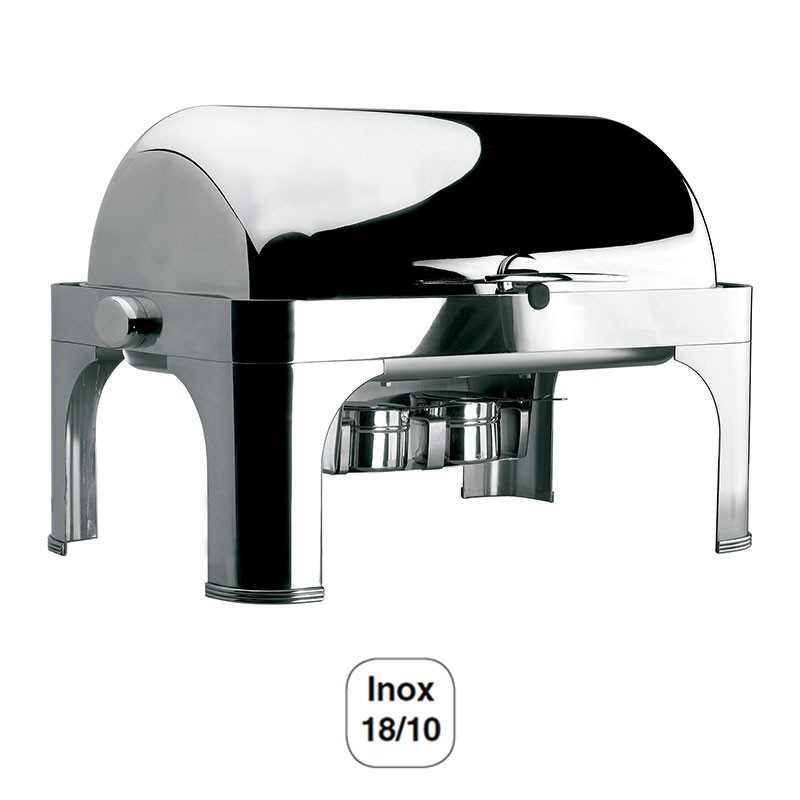 Chafing Dish GN 1/1 Roll Top fabricado com pernas e corpo em aço inoxidável 18/10 de alta qualidade e excelente resistência à corrosão. Ideal para hotelaria e buffets.