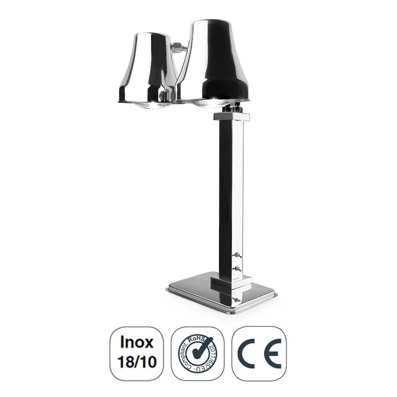 Lâmpada de aquecimento de 2 focos de infravermelhos de 550 W para manter os pratos quentes em cozinhas profissionais, hotelaria e buffets.