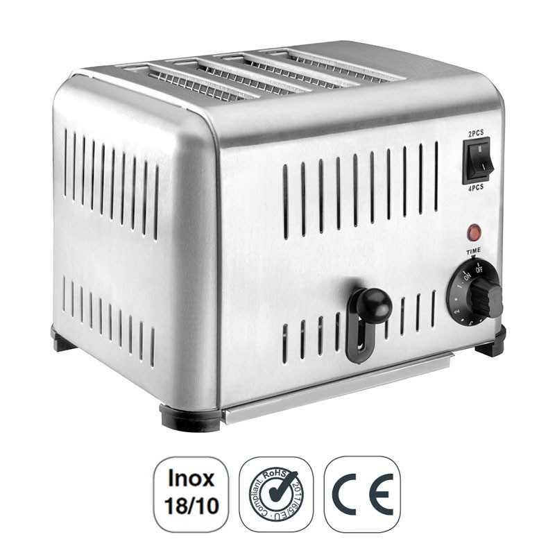 Torradeira elétrica semi-profissional de 4 canais e 2240W fabricada em aço inoxidável 18/10 de alta qualidade e excelente resistência à corrosão.