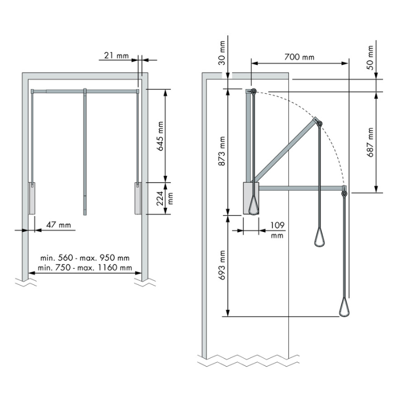 Otimize o espaço no seu armário com este sistema rebatível de aço antracito, ideal para acessar confortavelmente roupas em áreas altas.