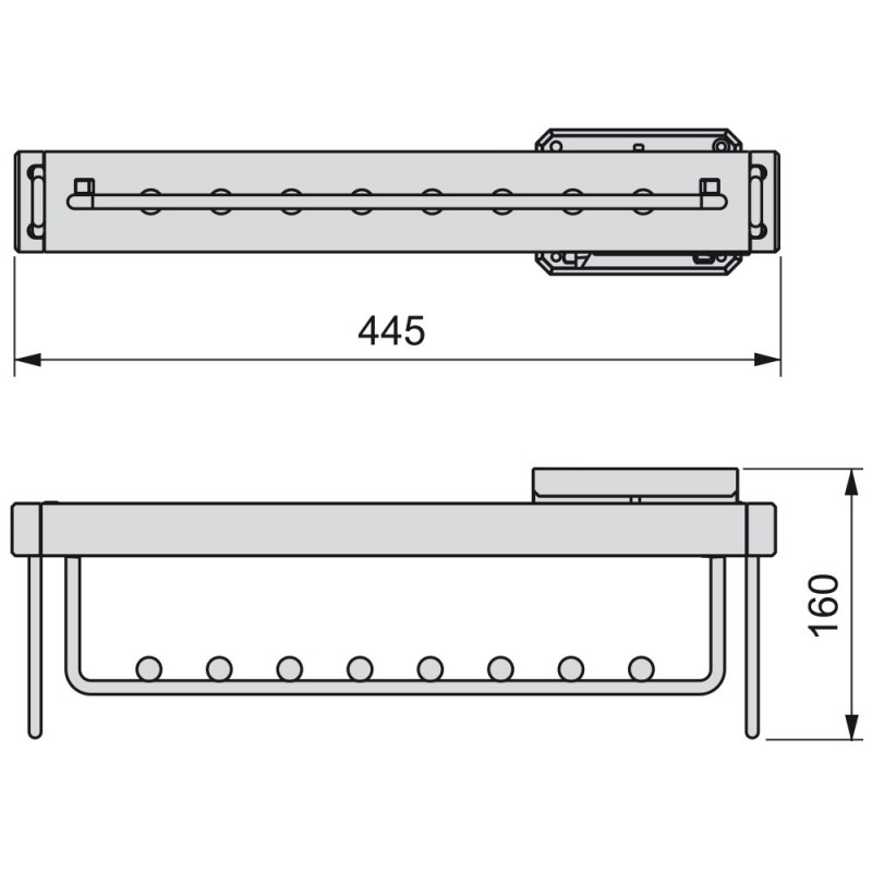 O suporte removível para armário Moka permite organizar de forma eficiente o espaço no interior de armários e closets, facilitando o acesso a poleiros. É fabricado em alumínio com acabamento pintado moka, e possui guias com fecho suave.
