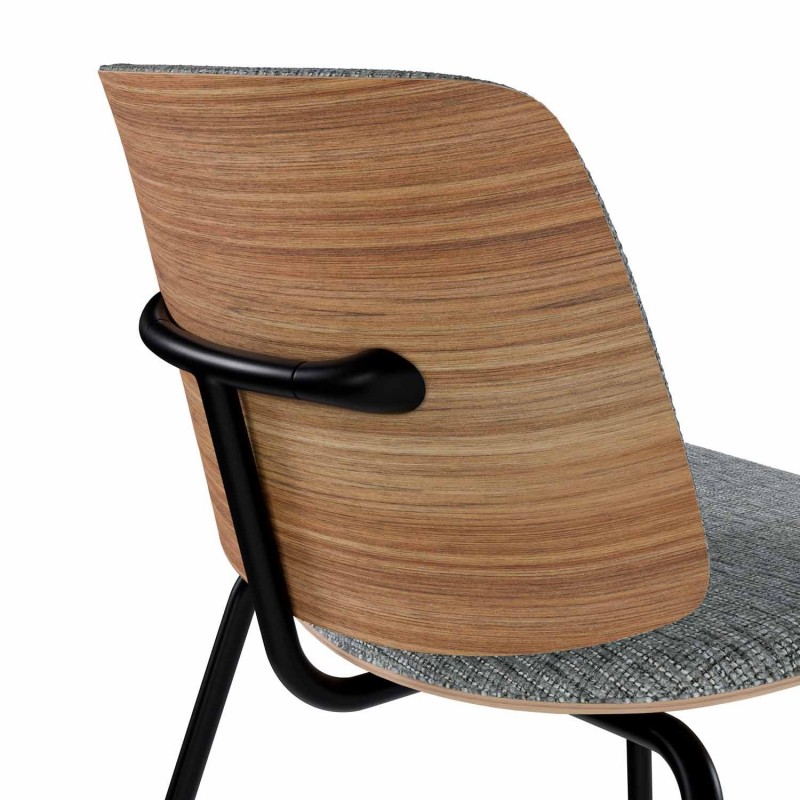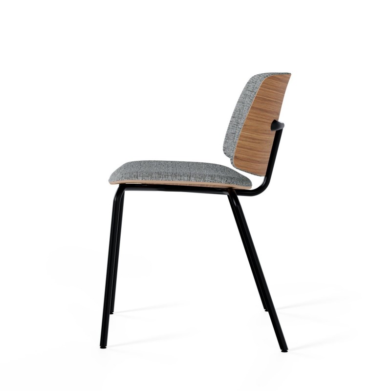 A base do assento e a estrutura exterior do encosto são confeccionadas em chapa de madeira, o que acrescenta um toque de sofisticação ao conjunto.
