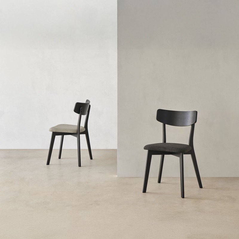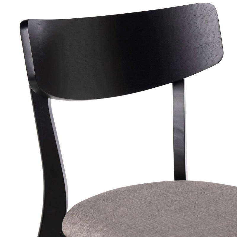 Sua estrutura é feita de chapa de carvalho na cor preta, o que lhe confere um aspecto elegante e atual. Combina com a cor cinza claro do estofado do assento (100% poliéster), adicionando um toque sofisticado.